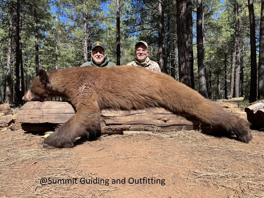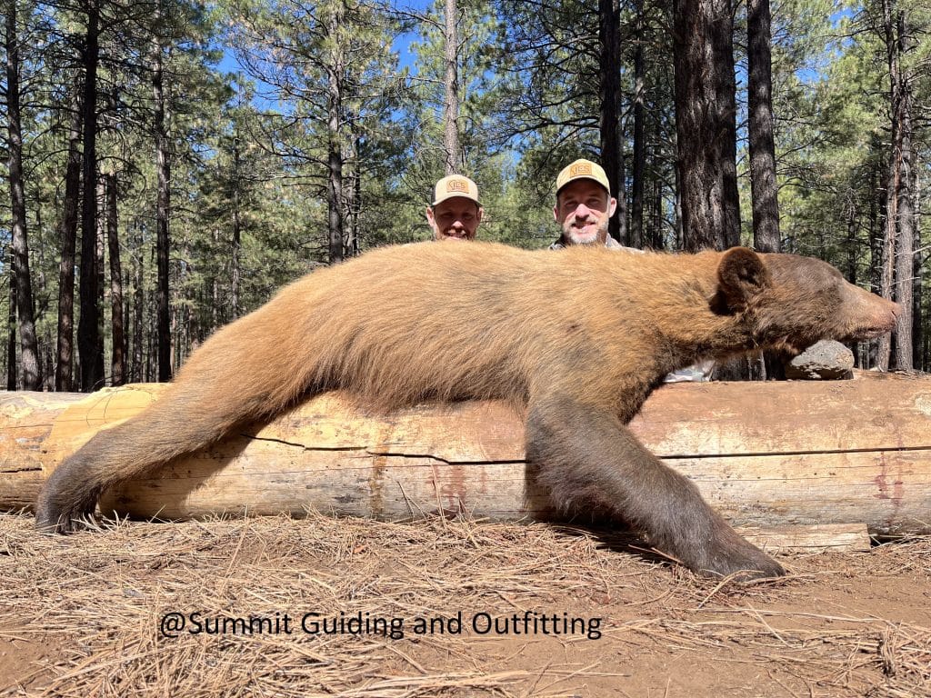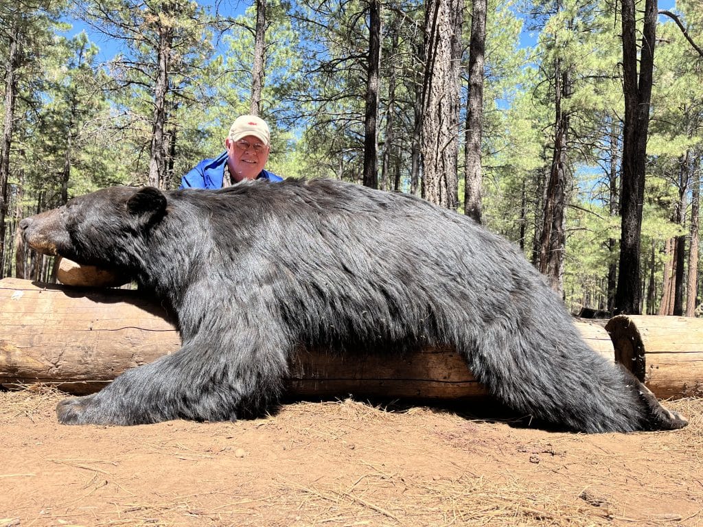 Now we’re going to show you bears that were seen on our trail cameras, then harvested by our hunters. All of these bears are also seven feet or bigger.